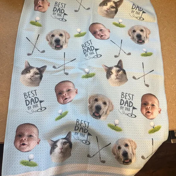 Custom Baby Face Golf Towel Best Dad By Par Towel Golf Lover Gifts Funny Gifts for Dad Birthday Gifts for Him