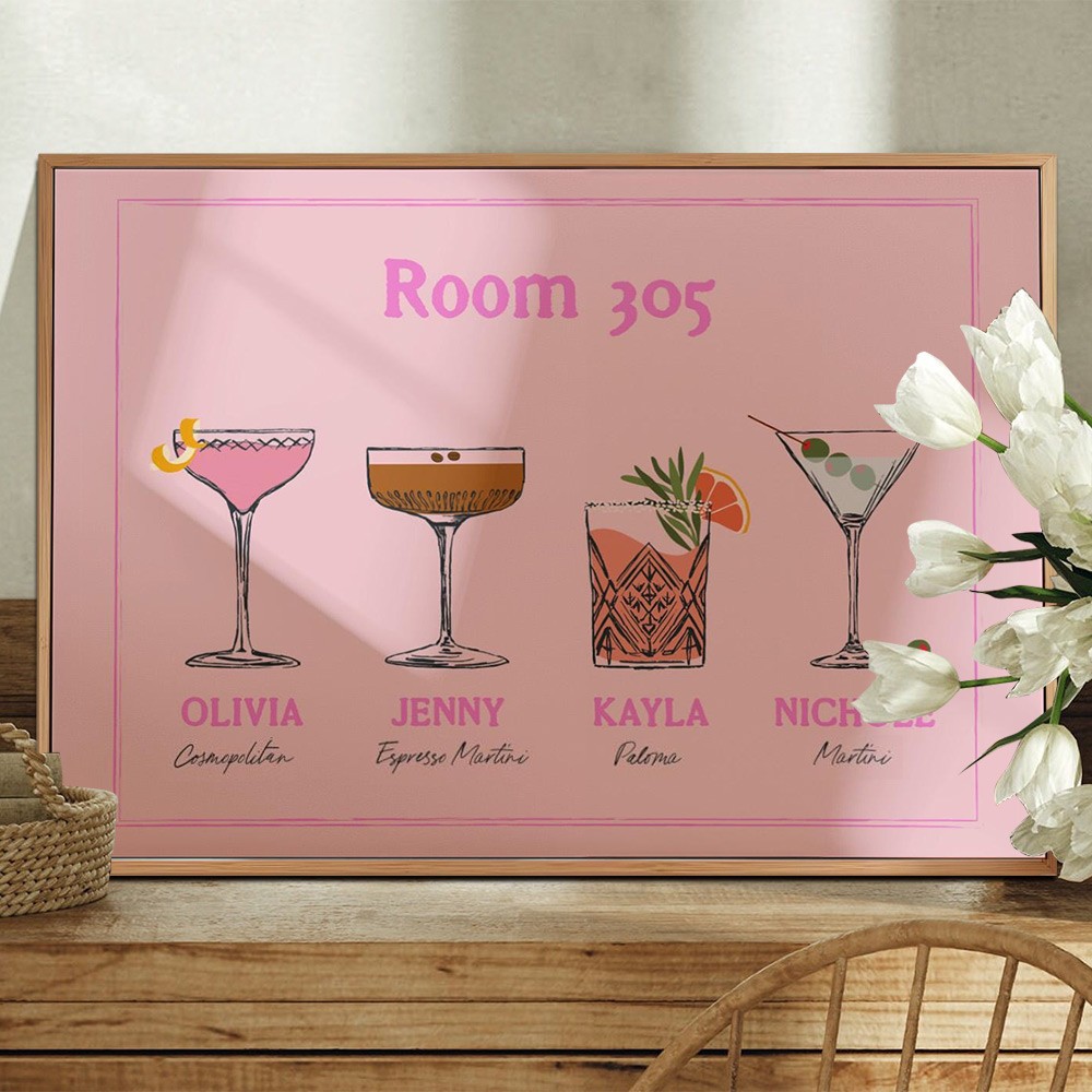 Personalized Roommates Drinks Art Print Frame with Names College Apartment Dorm Art Unique Gifts for Friends