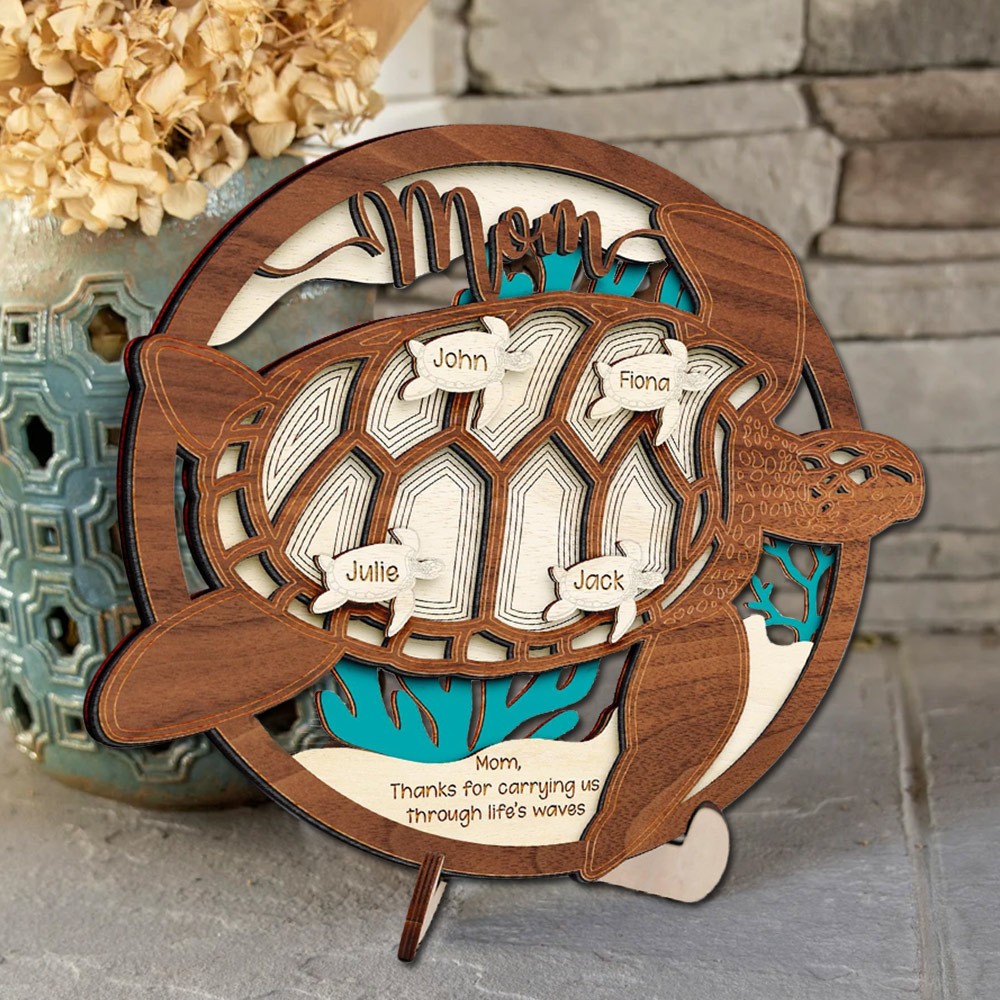 Personalized Sea Turtle Wood Sign with Kids Names Gift Ideas for Mom Grandma Mother's Day Gift