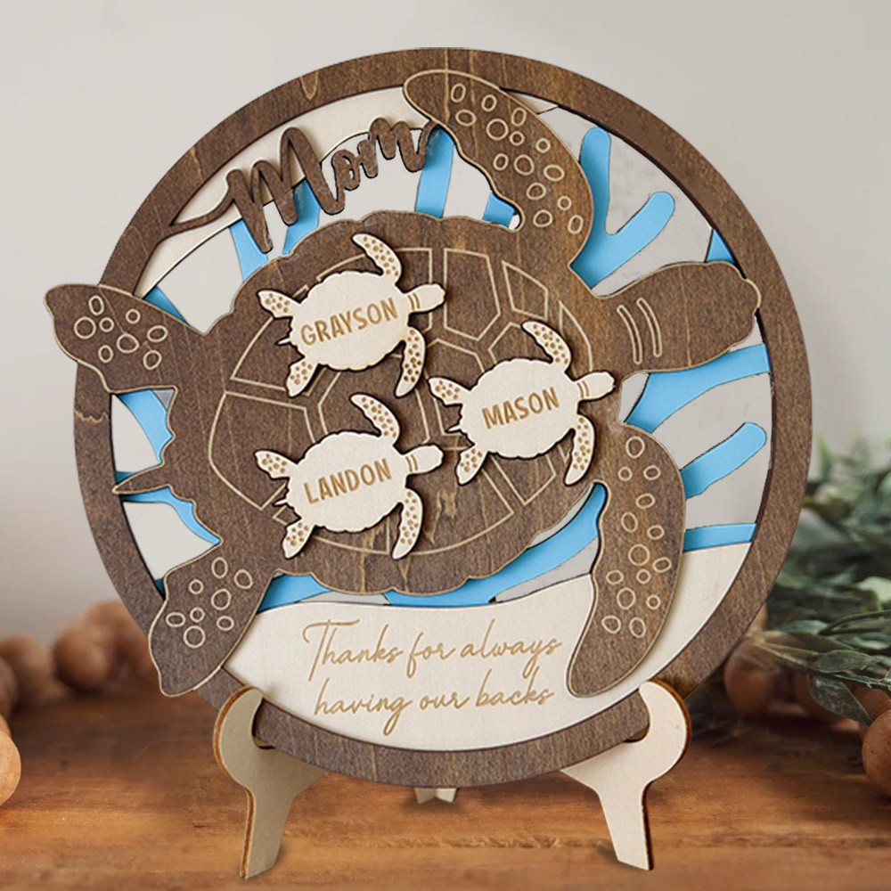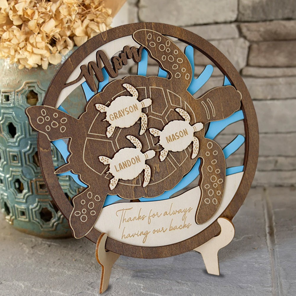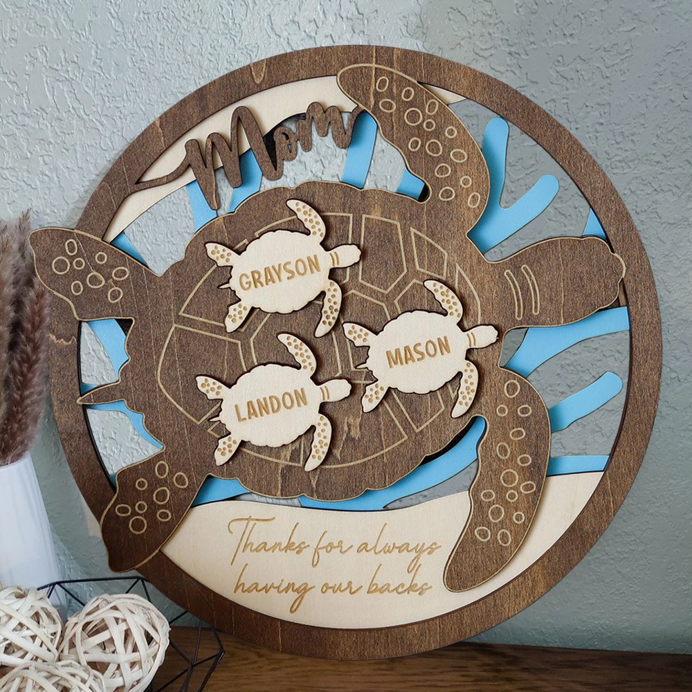 Personalized Sea Turtle Wood Sign with Kids Names Gift Ideas for Mom Grandma Mother's Day Gift