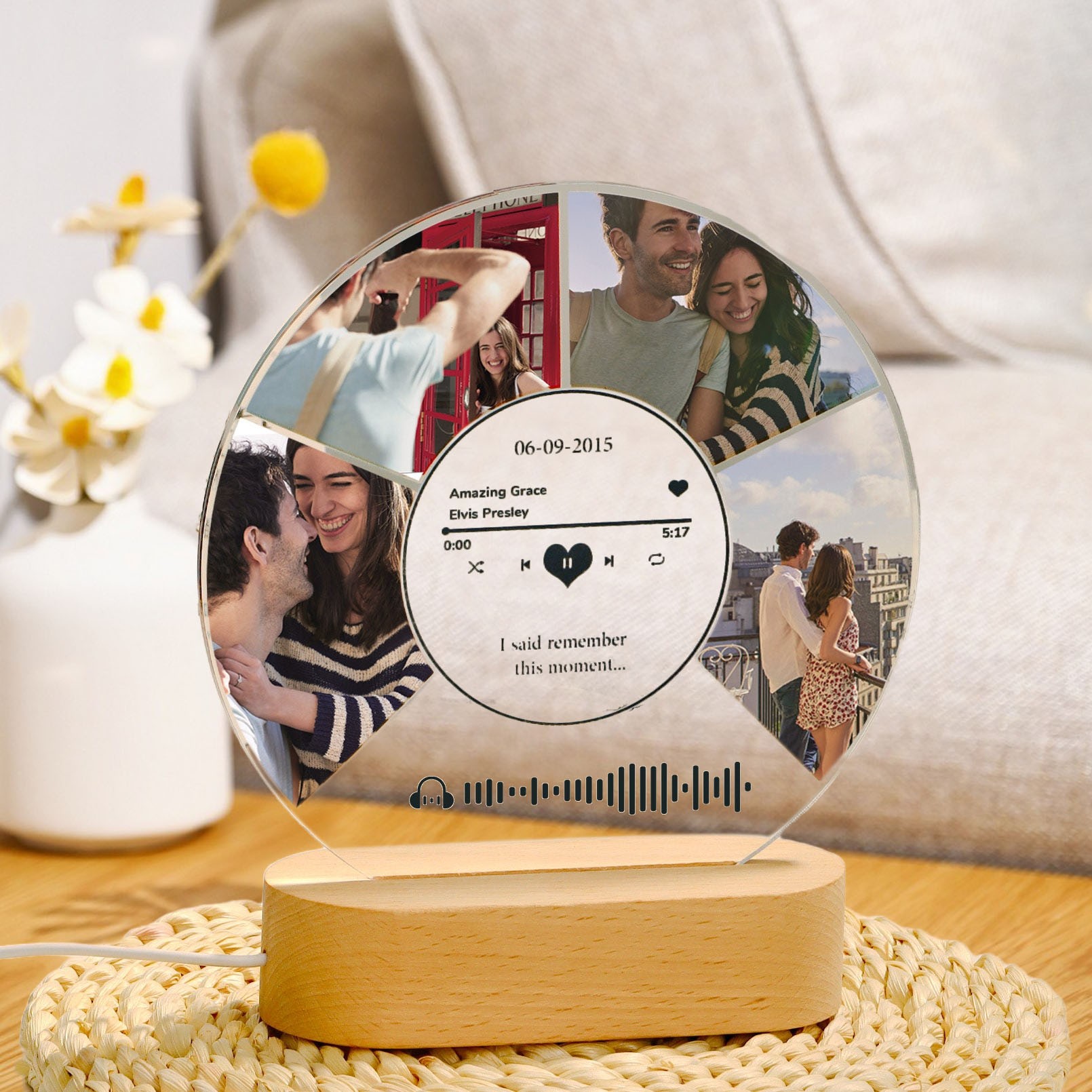 Personalized Spotify Music Plaque Night Light with Photo for Couple Anniversary Gifts for Wife Christmas Gift