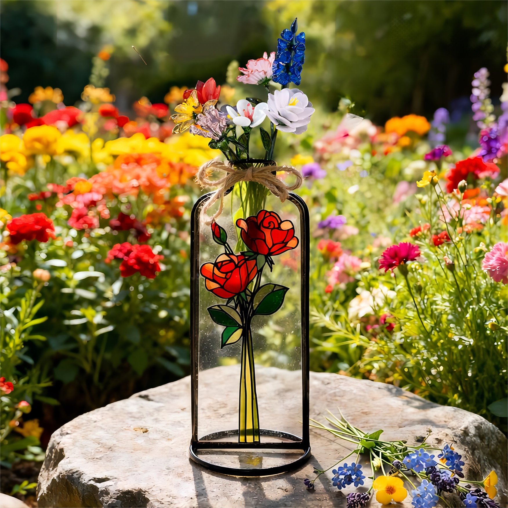 Personalized Stained Glass Vase with Glass Birth Month Flower Unique Gifts for Mom Grandma Mother's Day Gift Ideas