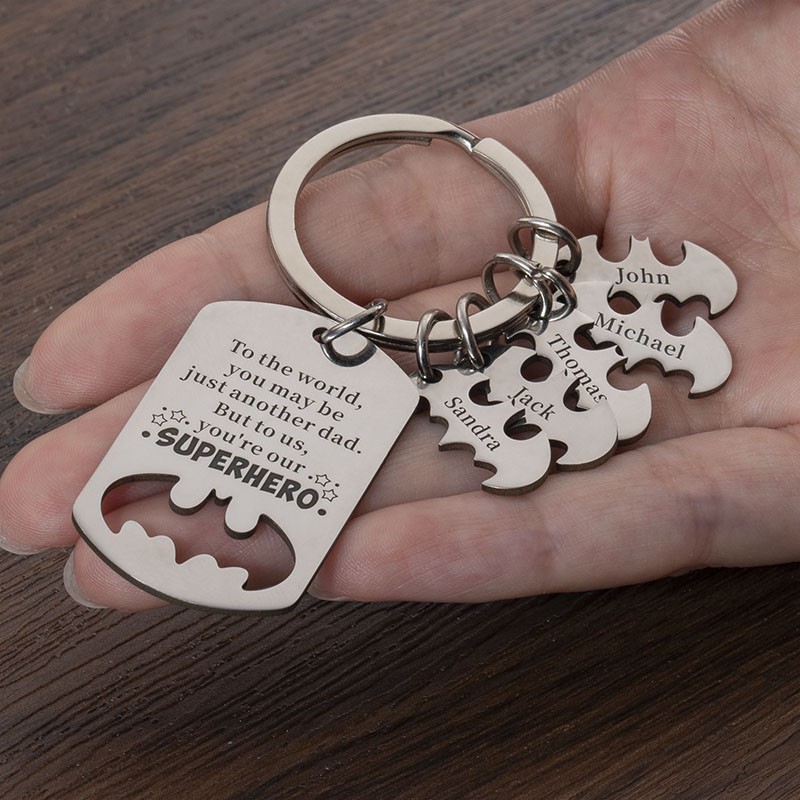 Personalized Superhero Dad Keychain with Kids Names Father's Day Gift Ideas