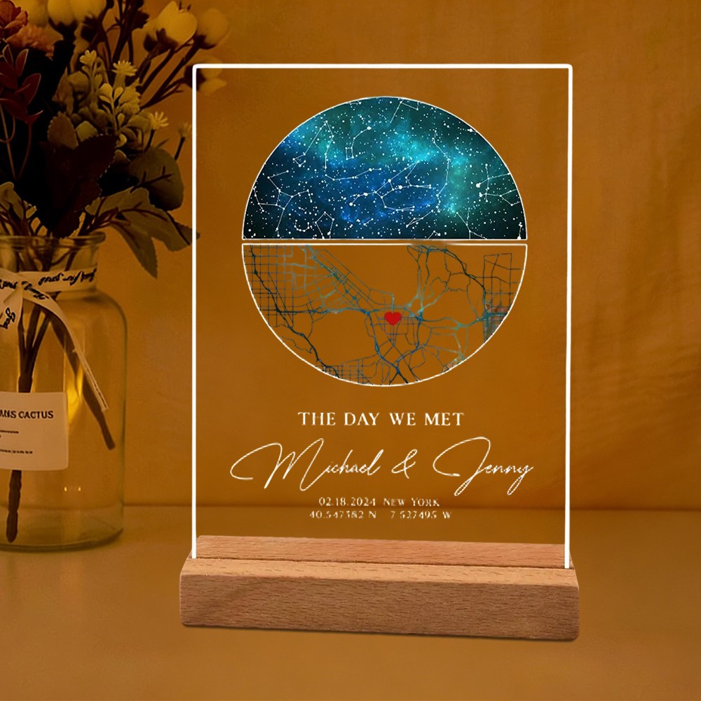 Personalized The Day We Met Star Map Acrylic Plaque Night Light for Couples Anniversary Gifts Valentine's Day Gift