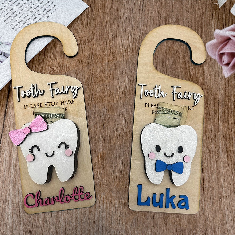 Personalized Tooth Fairy Door Hanger With Money Holder Keepsake Gift for Kids