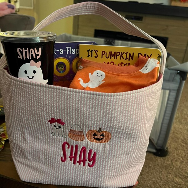 Personalized Trick or Treat Bag with Name Embroidered Halloween Candy Bag Halloween Gift for Kids