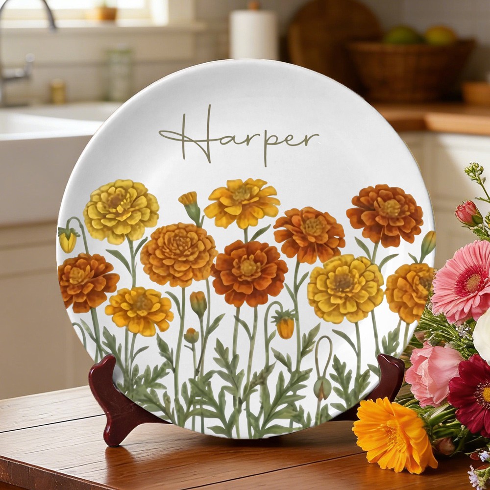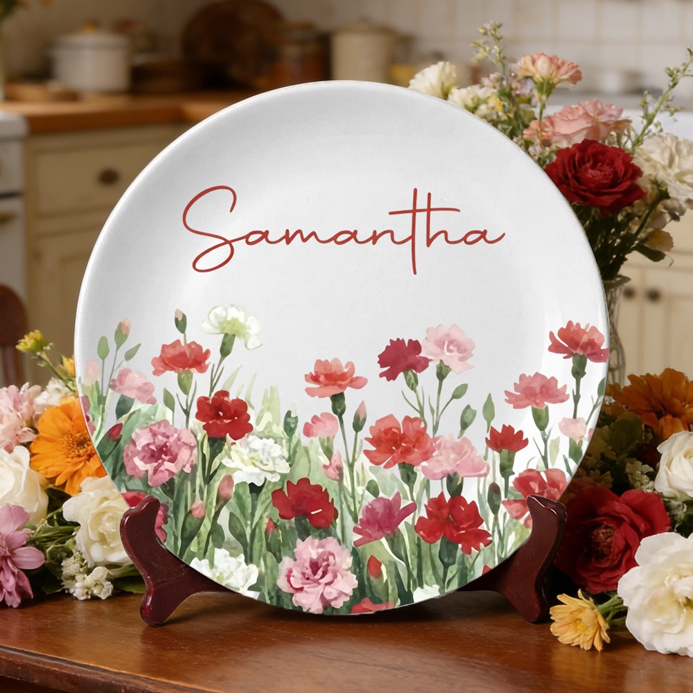 Personalized Watercolor Birth Month Flower Platter Birthday Jewelry Dish Gifts for Mom Mother's Day Gift
