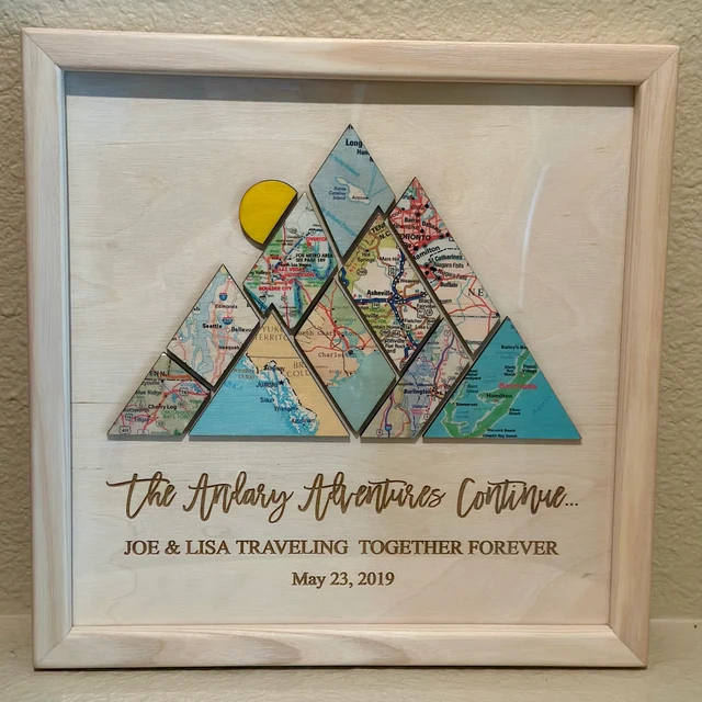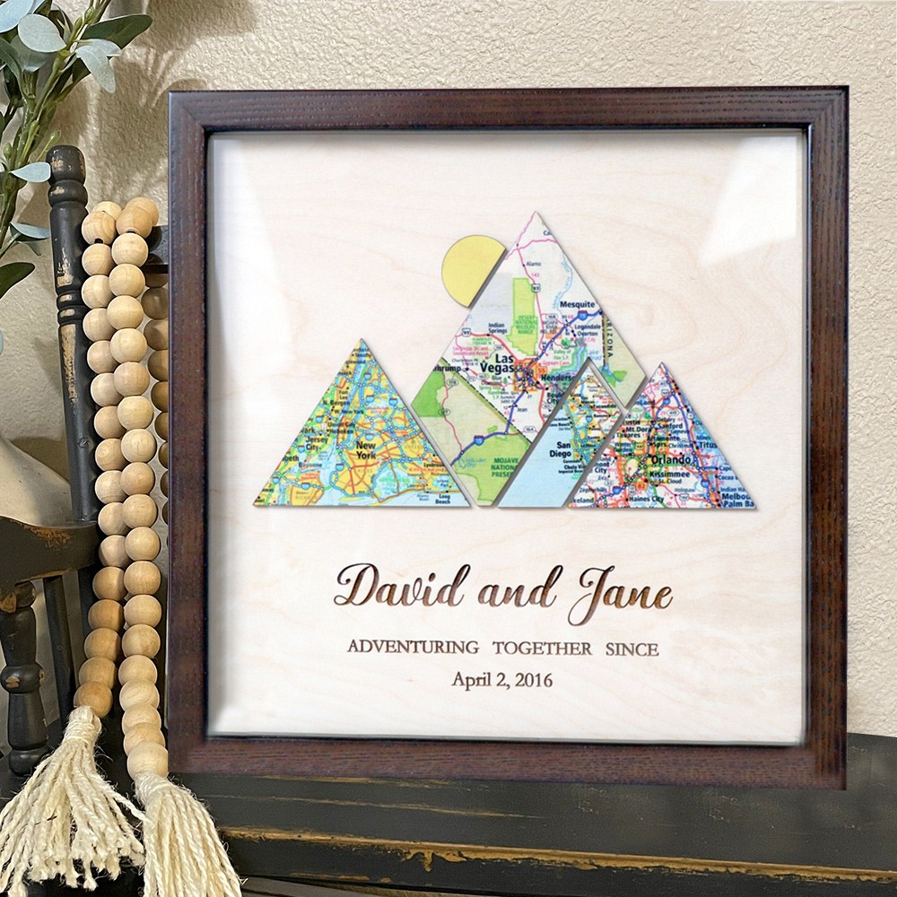 Personalized Wood Travel Map Adventure Mountain Map Gifts for Couple Anniversary Gift Ideas Christmas Gift