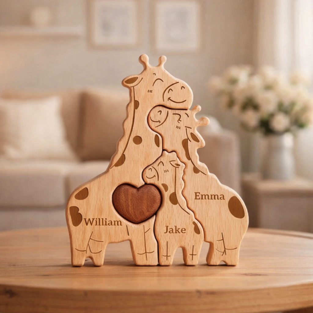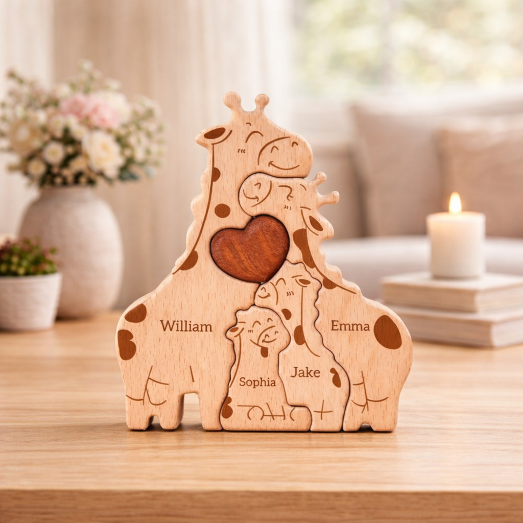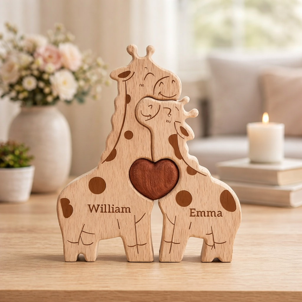 Personalized Wooden Giraffe Family Name Puzzle Gifts for Mom Mother's Day Gift Ideas