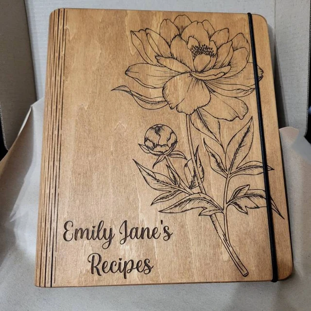 Personalized Wooden Recipe Book Blank Binder Custom Engraved Journal Cookbook for Mom Grandma Christmas Gift