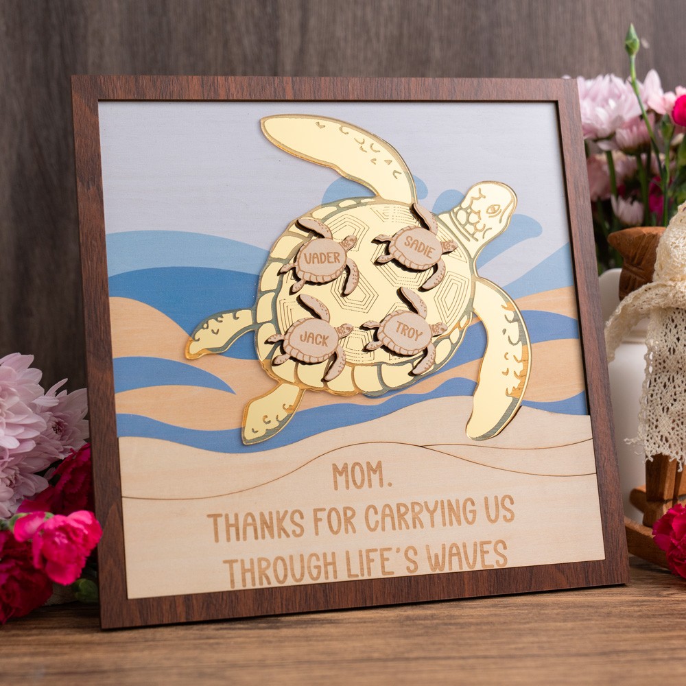 Personalized Wooden Sea Turtle Sign Thanks for Carrying Us Keepsake Gifts for Mom Grandma Mother's Day Gift