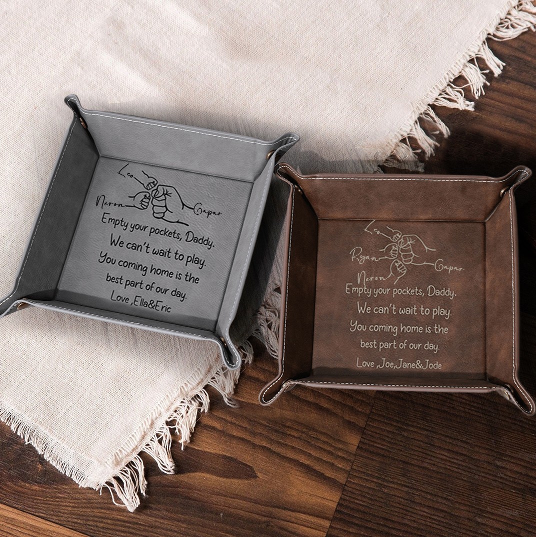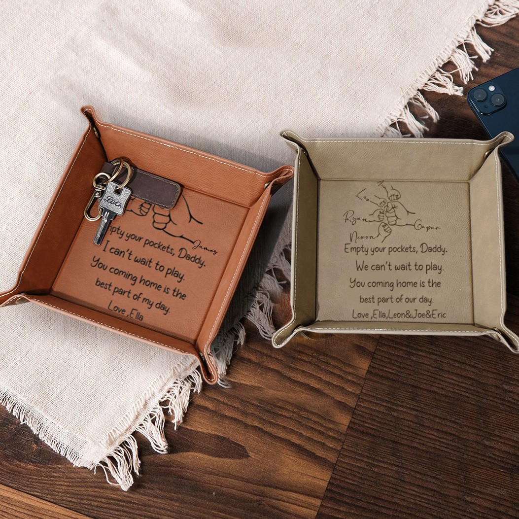Empty Your Pockets Daddy Custom Leather Valet Tray with Kids Names Gifts for Dad Father's Day Gift