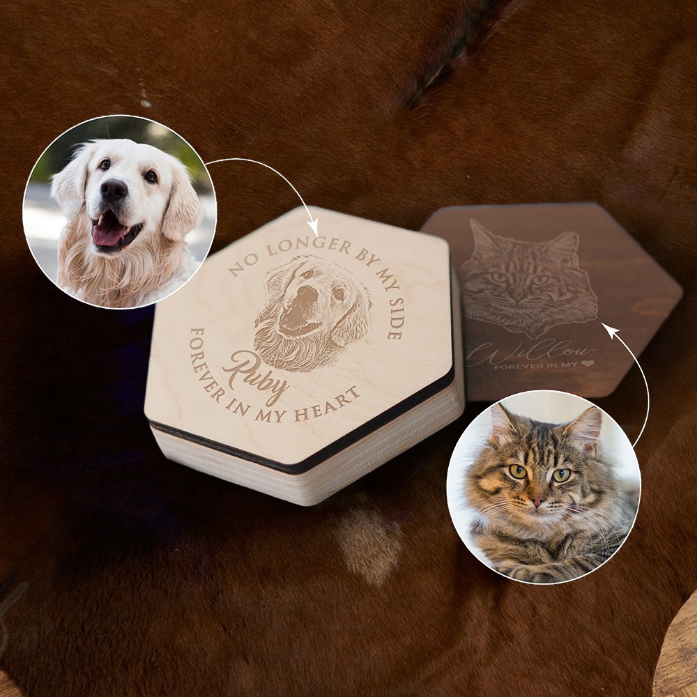 Personalized Pet Hair Memorial Engraved Wood Box with Photo for Pet Lovers Pet Loss Gifts Christmas Gift Ideas