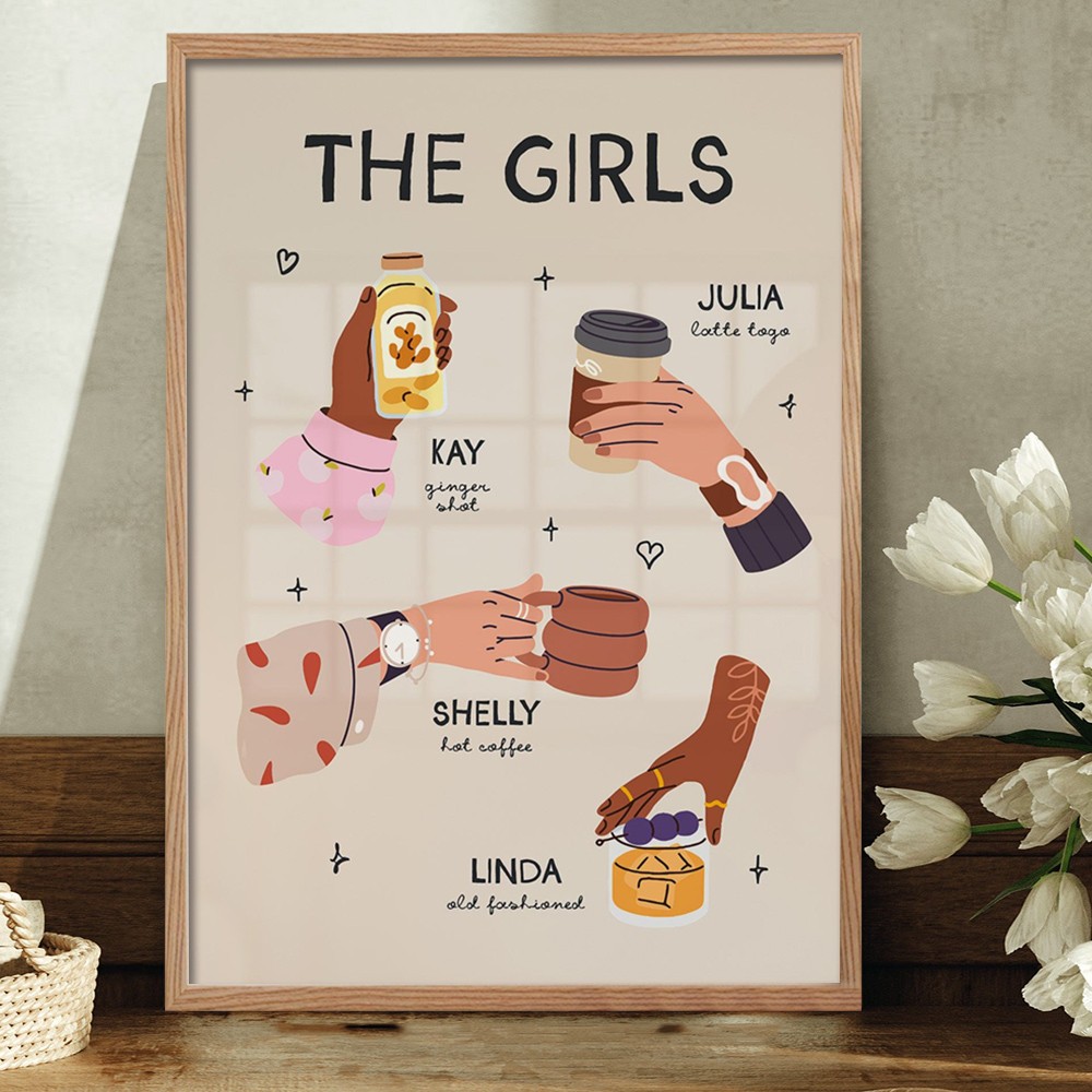 Personalized Roommates Drinks Art Print Frame with Names College Apartment Dorm Art Unique Gifts for Friends