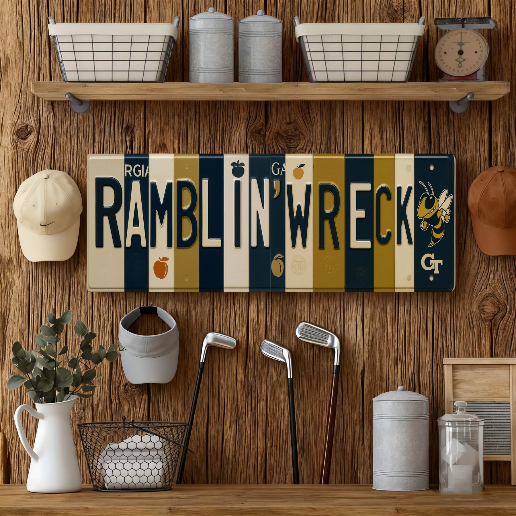 Ramblin’ Wreck License Plate Sign Georgia Tech Yellow Jackets Wall Art Dorm & Game Day Decor Christmas Gift
