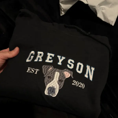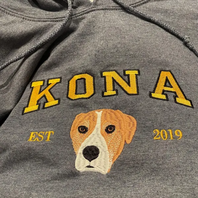 Embroidered Pet Portrait Photo Sweatshirt Custom Dog Hoodie with Photo and Name for Pet Lovers Gifts for Dog Owners