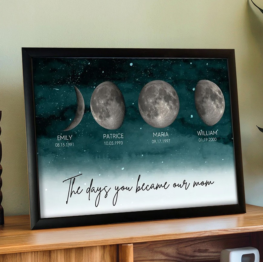 The Days You Became Our Mom Custom Moon Phase Frame By Date with Kids Names for Mom Unique Mother's Day Gift