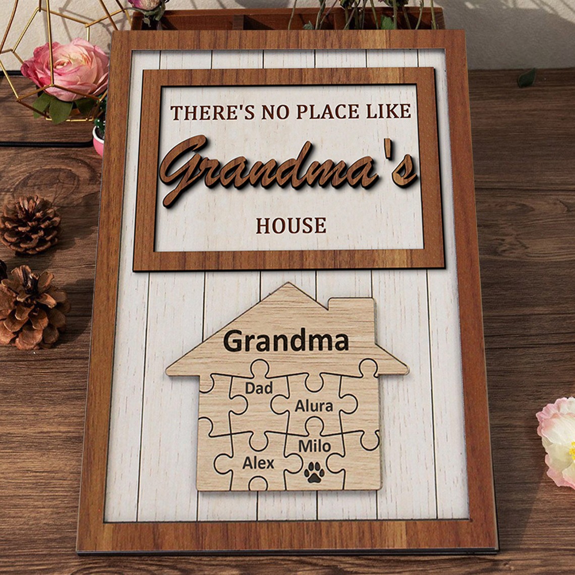 There's No Place Like Grandma's House Personalized Puzzle Name Sign Gift for Mom Grandma Mother's Day Gifts