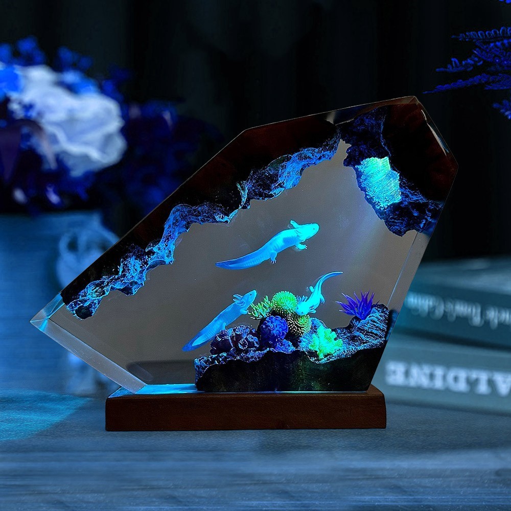 Axolotl or Mexican Salamander Resin Wood Lamp Christmas Gift Ideas Birthday Gifts