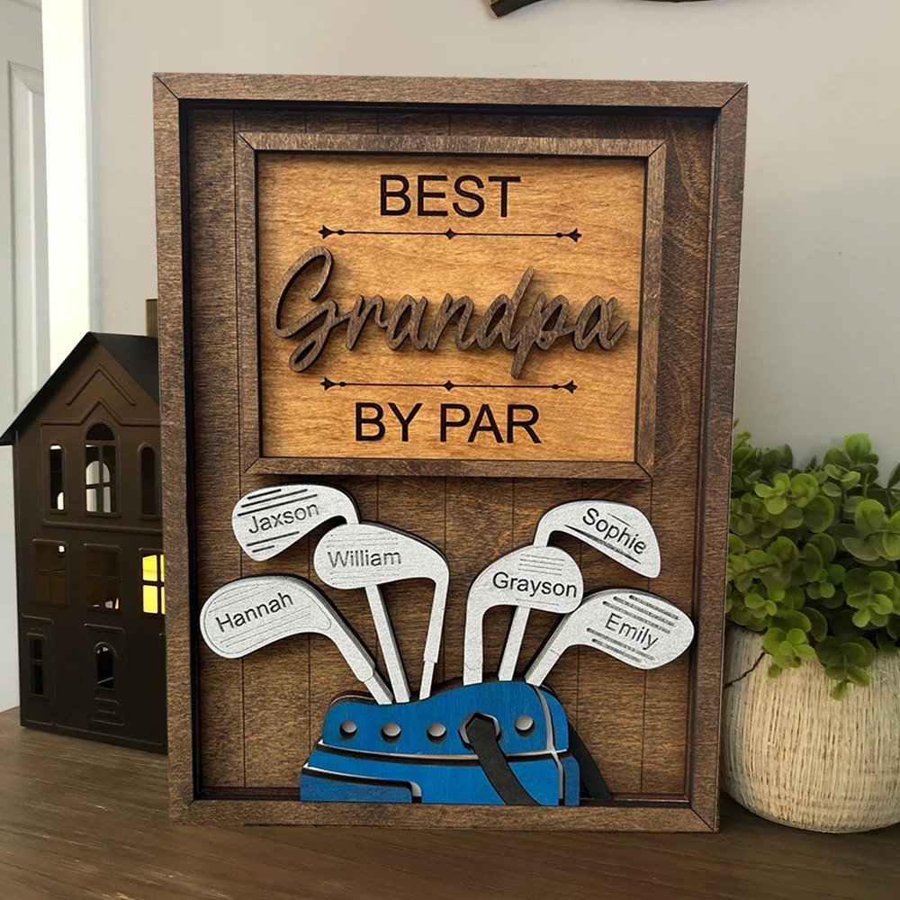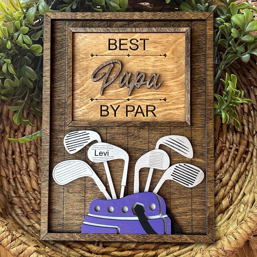 Best Dad by Par Personalised Golf Sign with Kids Names Gifts for Dad Grandpa Keepsake Gift for Golf Lover Father's Day Gifts