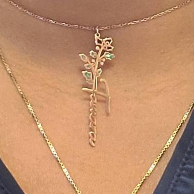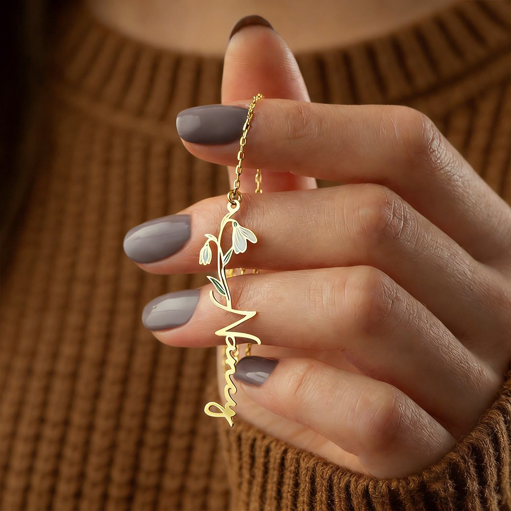 This necklace is so beautiful! I have mine in script and I have 3 As in my name and it is still legible. The birth flower is a wonderful touch. Thank for the great artistry. I've wanted a name necklace for awhile and this one is perfect!