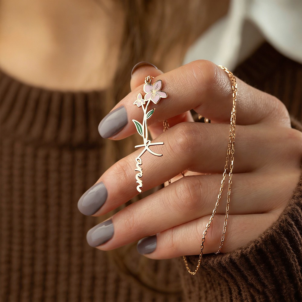 Custom Floral Name Necklace With Birth Flower Personalised Gift For Mum Grandma Unique Mother’s Day Present