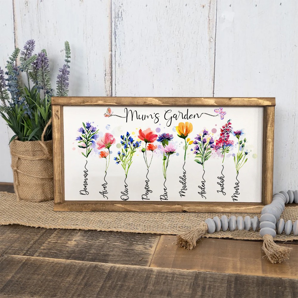 Custom Mums Garden Birth Month Flower Print Wooden Family Plaque Sign With Kids Names Birthday Keepsake Gifts for Mum Grandma Unique Mother's Day Gift Ideas