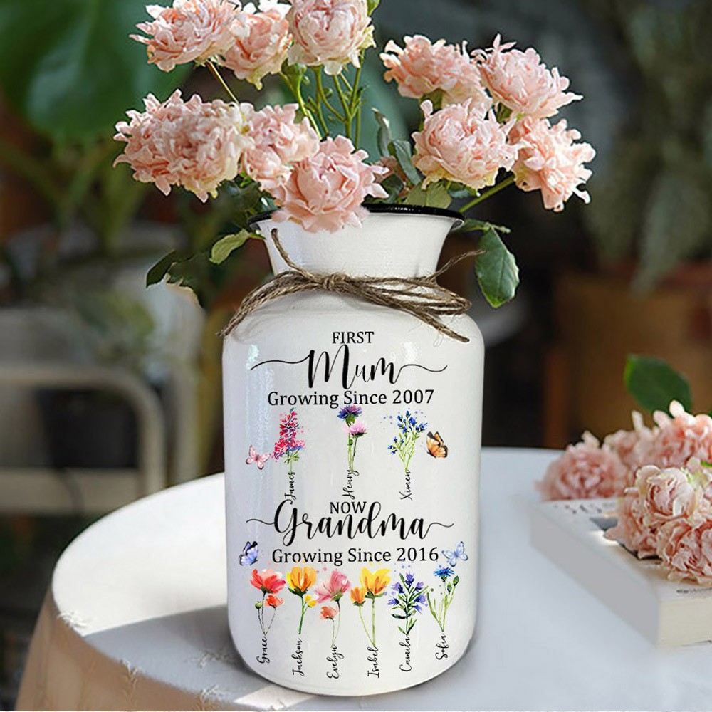 Personalised First Mum Now Grandma Birth Flower Vase with Kids Name Unique Gifts for Mum Grandma Mother's Day Gifts