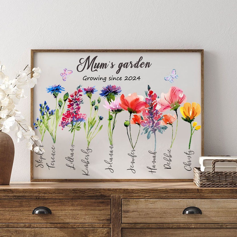 Personalised Grandma's Garden Birth Flower Frame with Kids Names