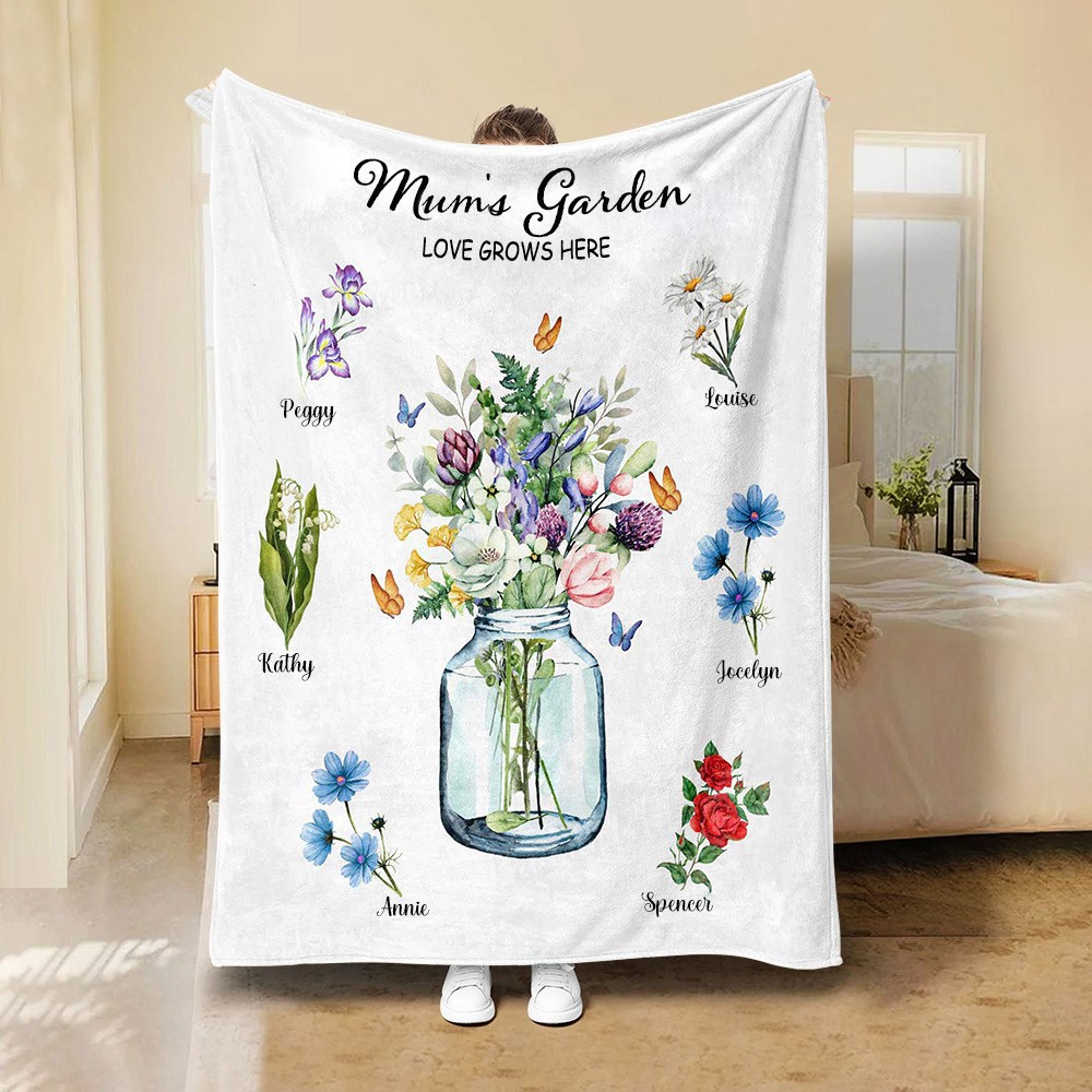 Personalised "Love Grows Here" Birth Flower Blanket for Her