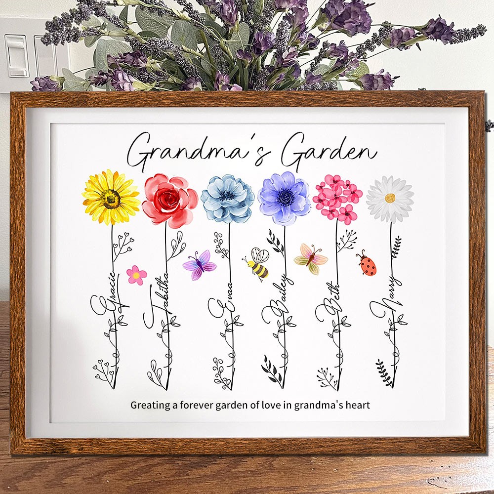 Custom Art Print Birth Flower Frame To Grandma's Garden Gift for Mum Grandma Mother's Day Gift Ideas