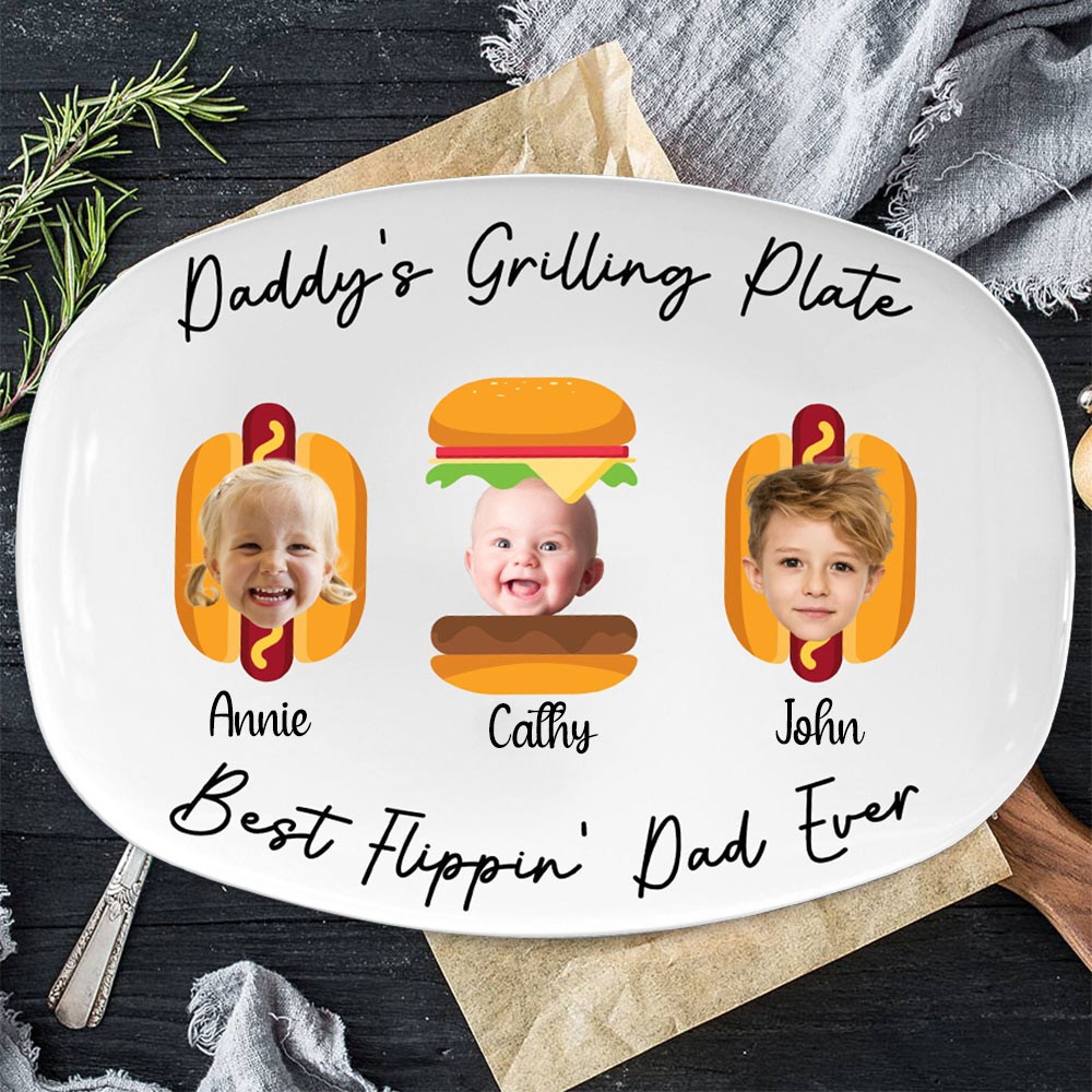 Custom Art Print Burger and Hot Dog Daddy's Grilling Plate With Kids Names Best Father's Day Gift Ideas