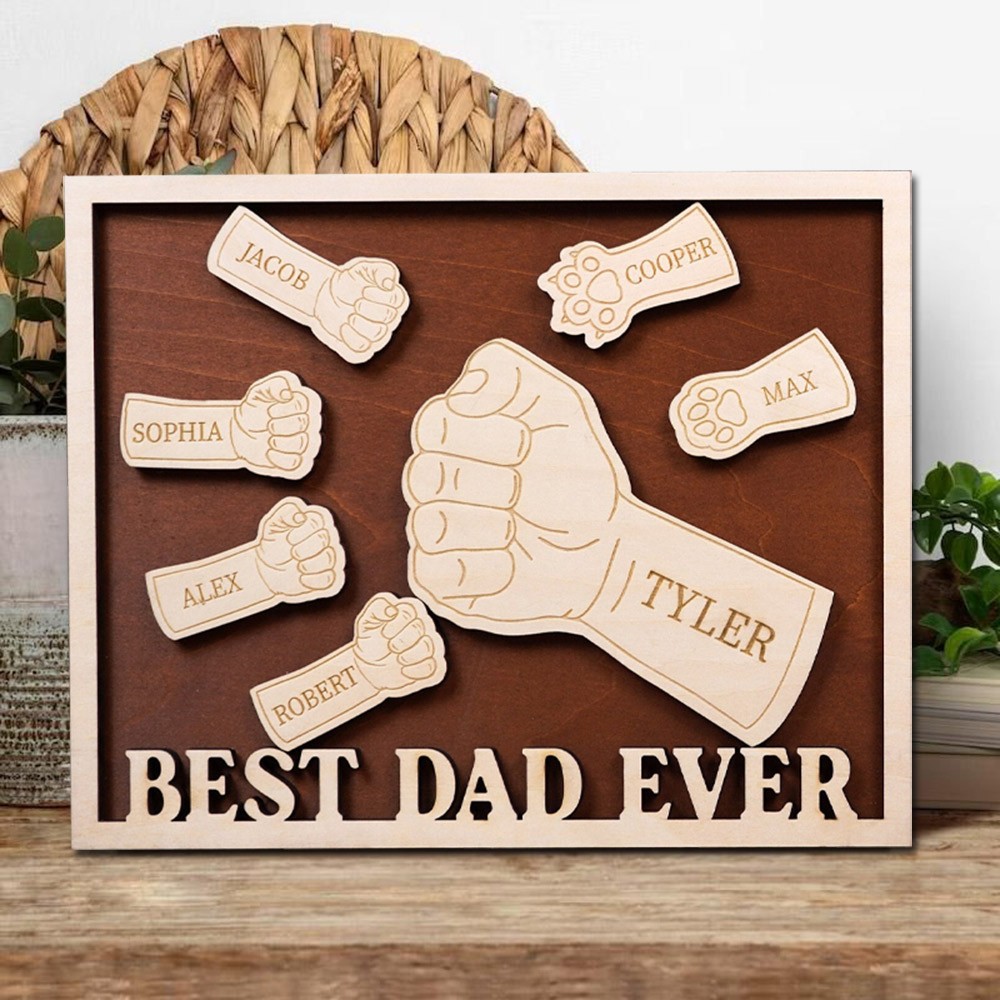 Custom Best Dad Ever Fist Bump Wood Frame Sign Unique Father's Day Gift Ideas