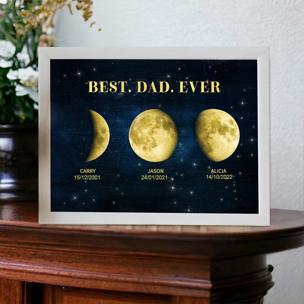 Custom Best Dad Ever Moon Phase Print Frame Keepsake Gifts Unique Father's Day Gift Ideas