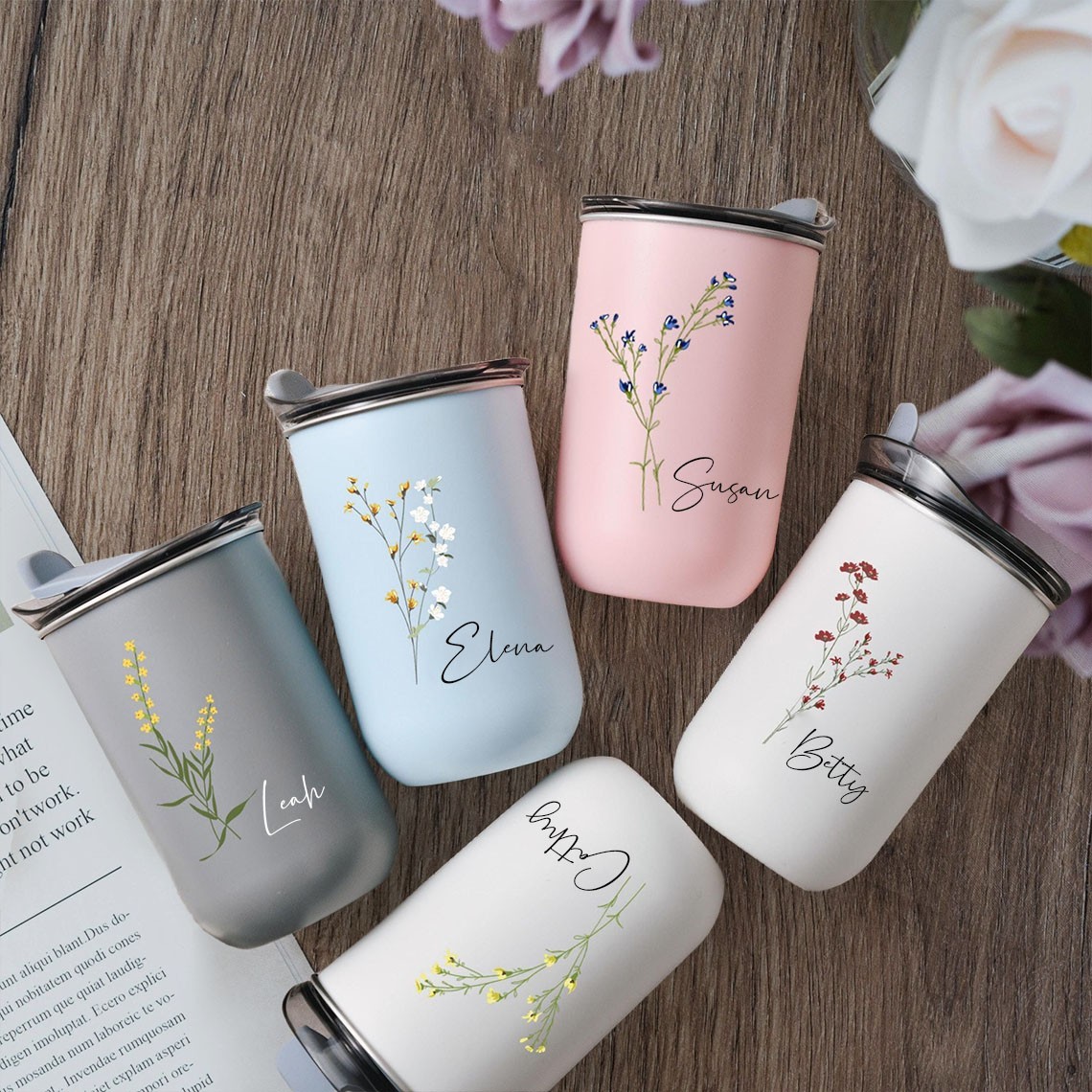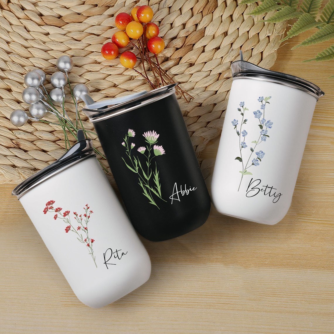 Custom Birth Flower Tumbler with Name Personalised Floral Tumbler with Lid Wedding Gift Bridesmaids Gifts for Her Unique Anniversary Gift