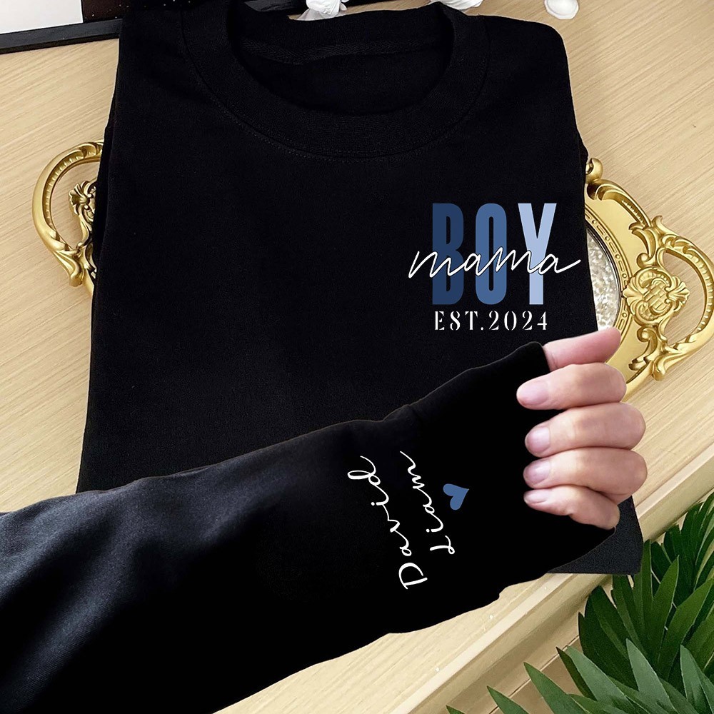 Custom Boy Mama Sweatshirt with Kids Names on Sleeve Mama Of Boys Hoodie for Mum New Mum Gift Mother's Day Gifts