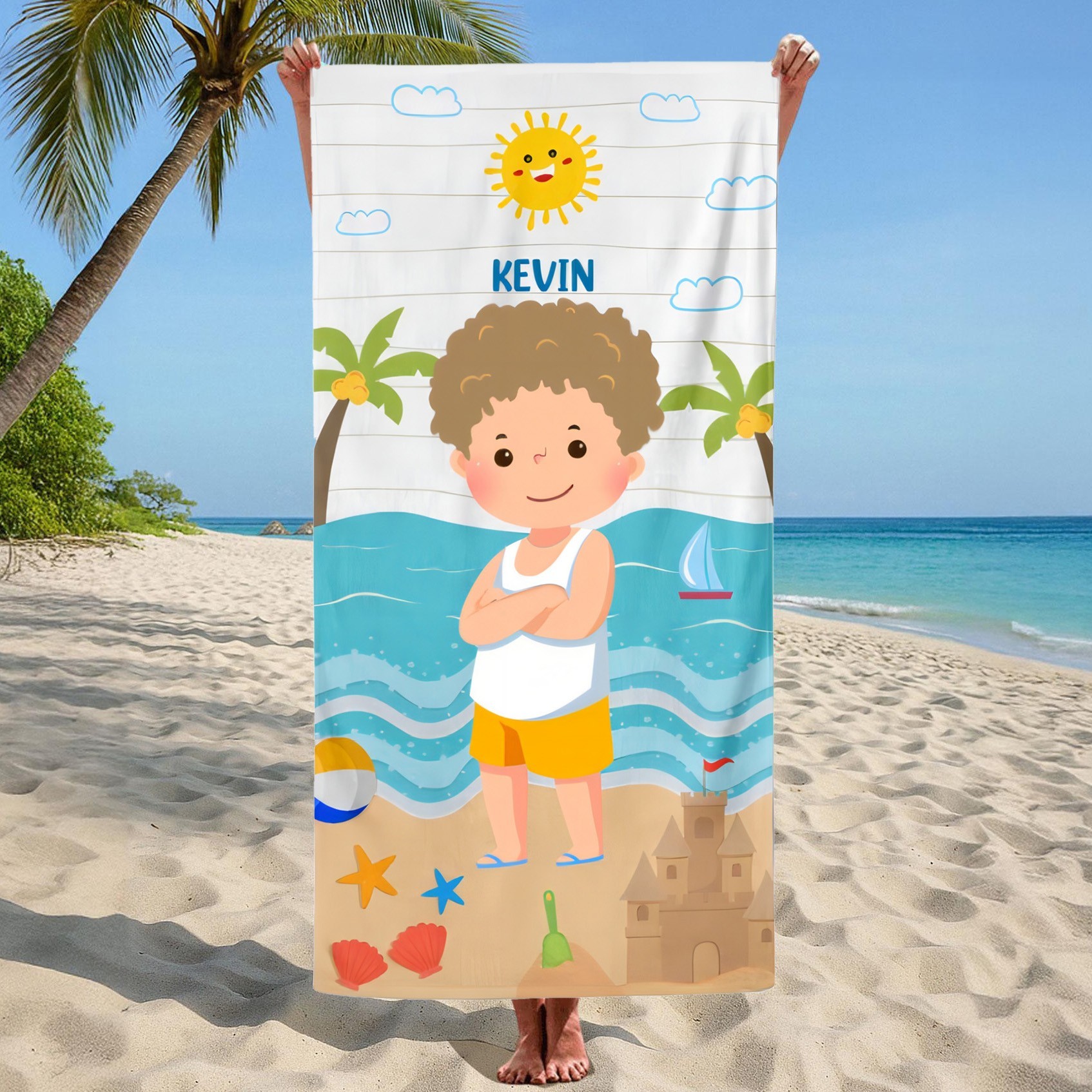 Custom Cartoon Face Beach Towel with Name for Kids Summer Party Birthday Gift for Girls Boys