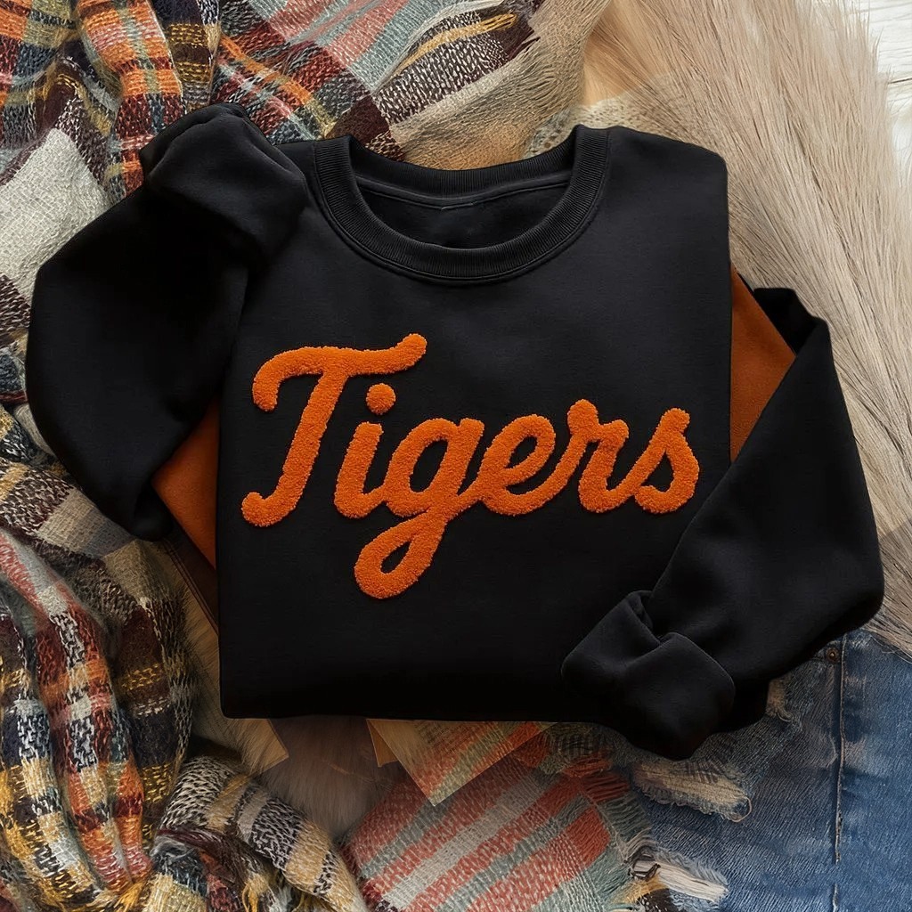 Custom Chenille Embroidered Team Sport Sweatshirt with Game Day Fuzzy Letter Unique Gift for Game Day