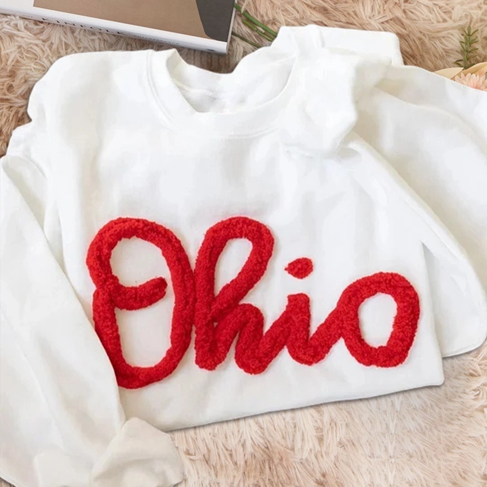 Custom Chenille Embroidered Team Sport Sweatshirt with Game Day Fuzzy Letter Unique Gift for Game Day