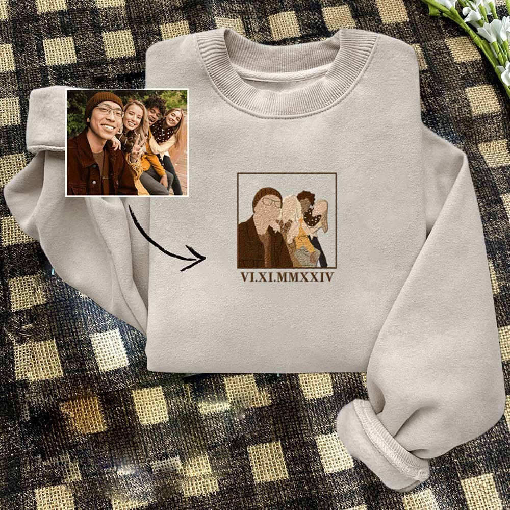 Custom Couple Embroidered Portrait Matching Sweatshirt From Your Photo Anniversary Gift for Her Him Valentine's Day Gifts