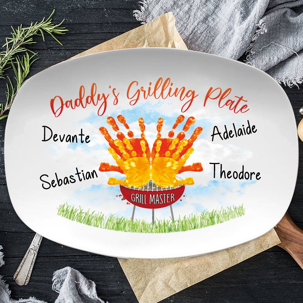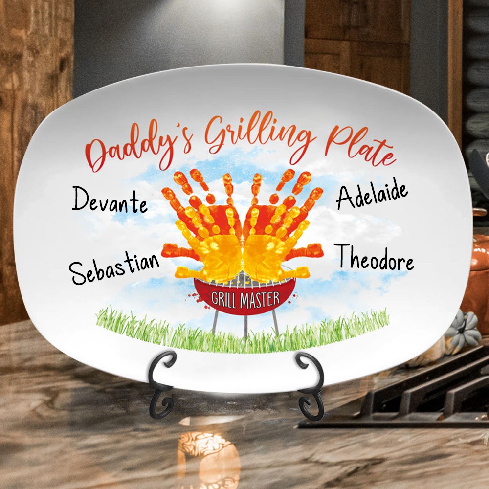 Custom Daddy's Grilling Plate With Handprint and Kid Names Unique Father's Day Gift Ideas