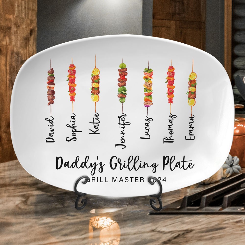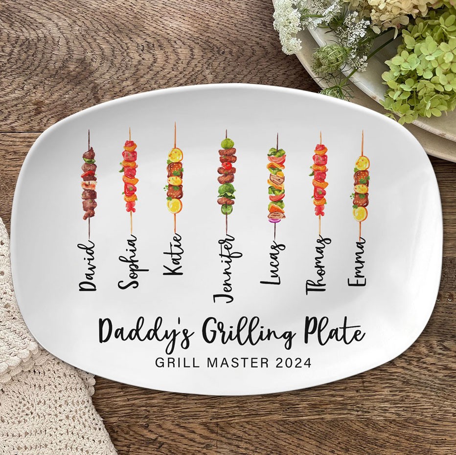 Custom Daddy's Grilling Plate With Kids Names Personalised BBQ Platter Father's Day Gift Ideas