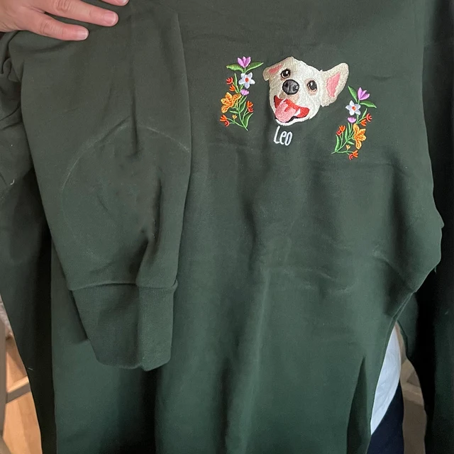 Custom Dog Face Photo Embroidered Sweatshirt Hoodie With Pet Name Pet Lovers Gift Ideas Keepsake Gifts for Her