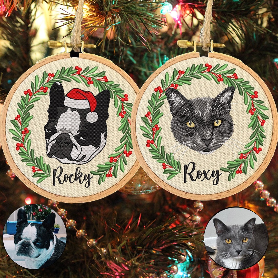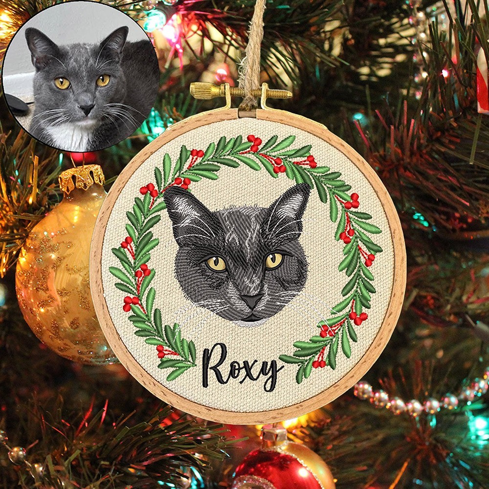 Custom Embroidered Cat Portrait Photo Ornament Gifts for Cat Lovers Pet Memorial Gift Christmas Gift for Pet Lovers