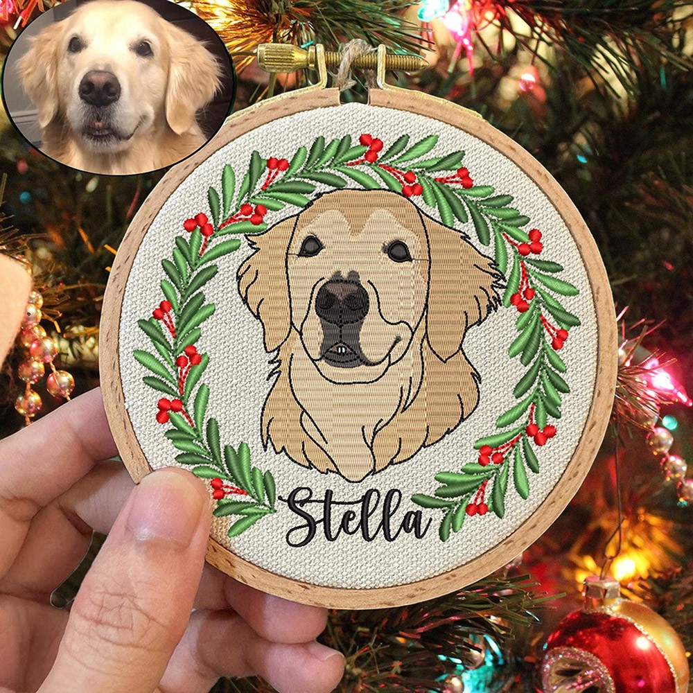 Custom Embroidered Dog Portrait Photo Ornament Gifts for Dog Owners Pet Memorial Gift Christmas Gift for Pet Lovers