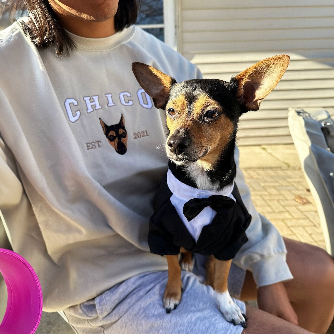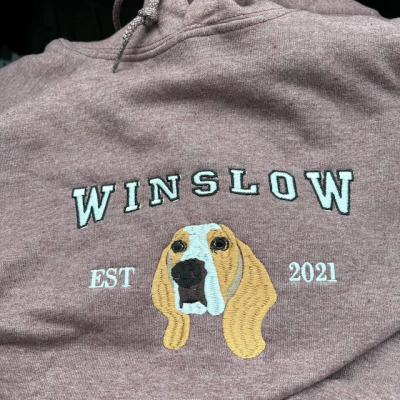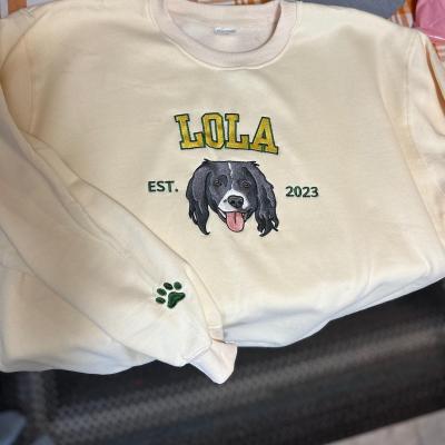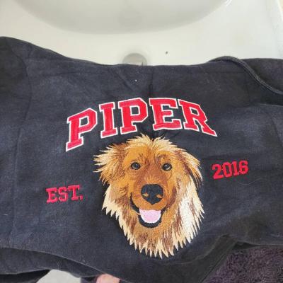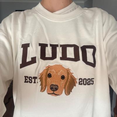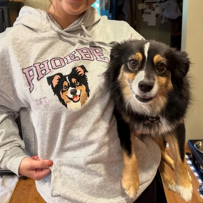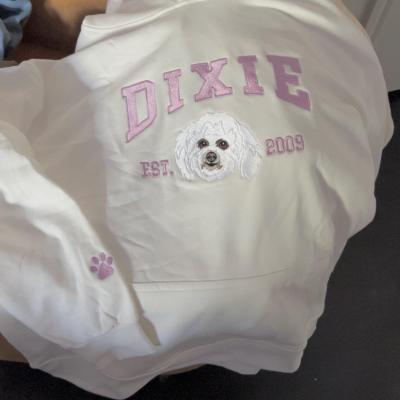 Custom Embroidered Pet Dog Portrait Photo Sweatshirt Hoodie Keepsake Gift for Pet Lovers
