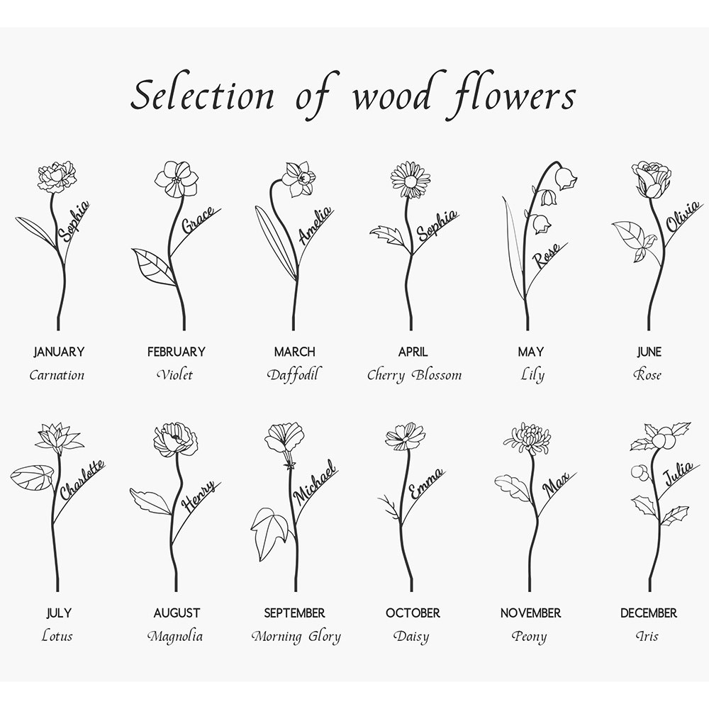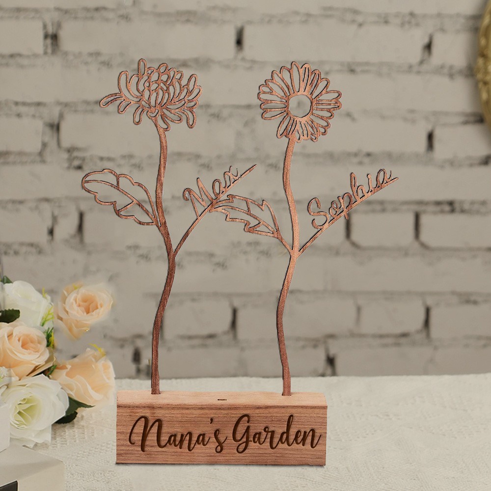 Custom Family Wood Birth Flower Garden with Names Family Keepsake Gifts Christmas Gift for Mum Grandma