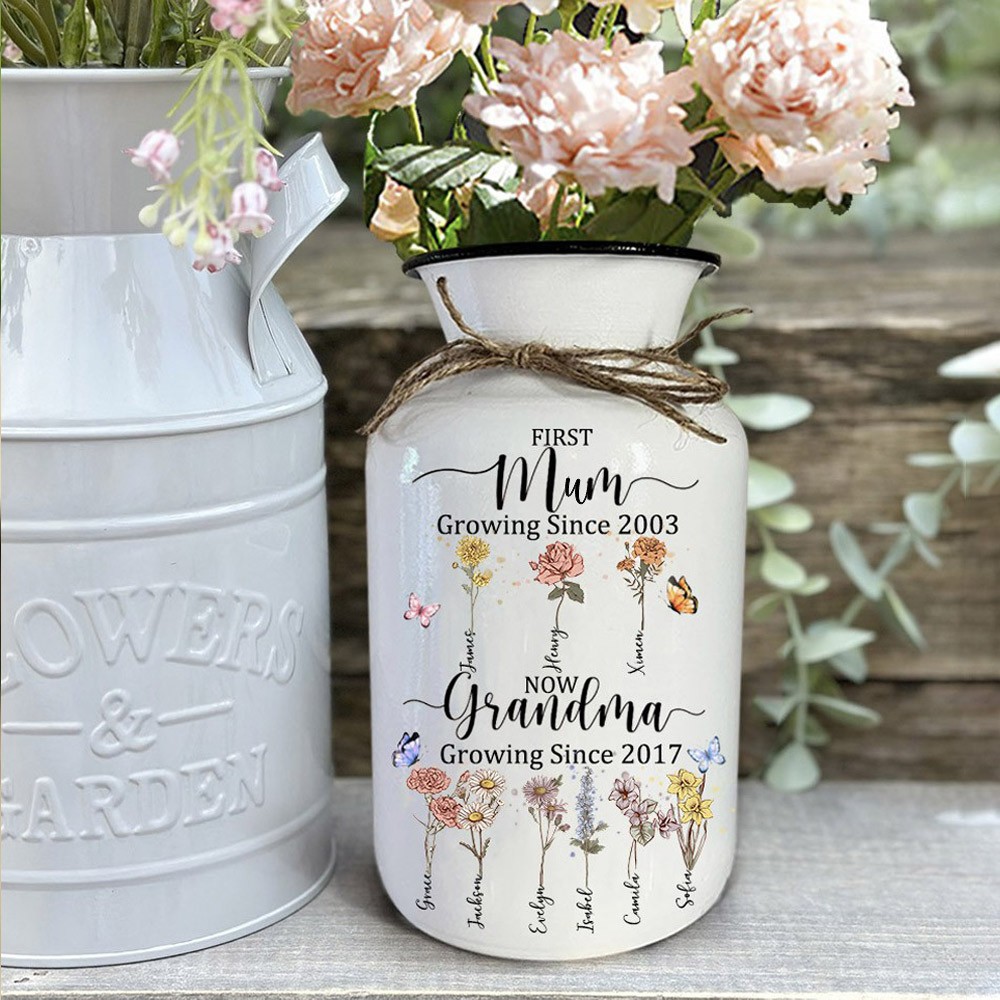 Custom First Mum Now Grandma Birth Flower Vase with Kids Name Gifts for Mum Grandma Mother's Day Gift Ideas