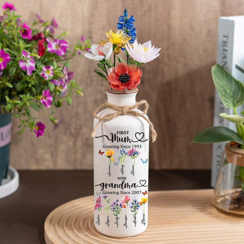 Custom First Mum Now Grandma Birth Month Flower Vase with Kids Names Gifts for Mum Grandma Mother's Day Gift