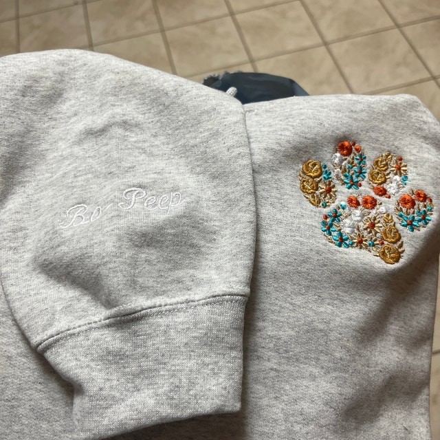 Custom Floral Embroidered Pet Paw Print on Left Chest Sweatshirt Hoodie Christmas Gifts Keepsake Gift For Pet Lover